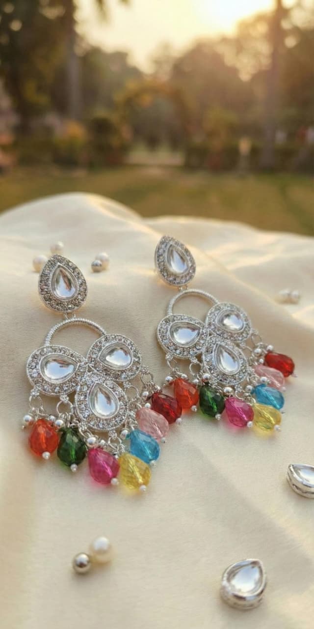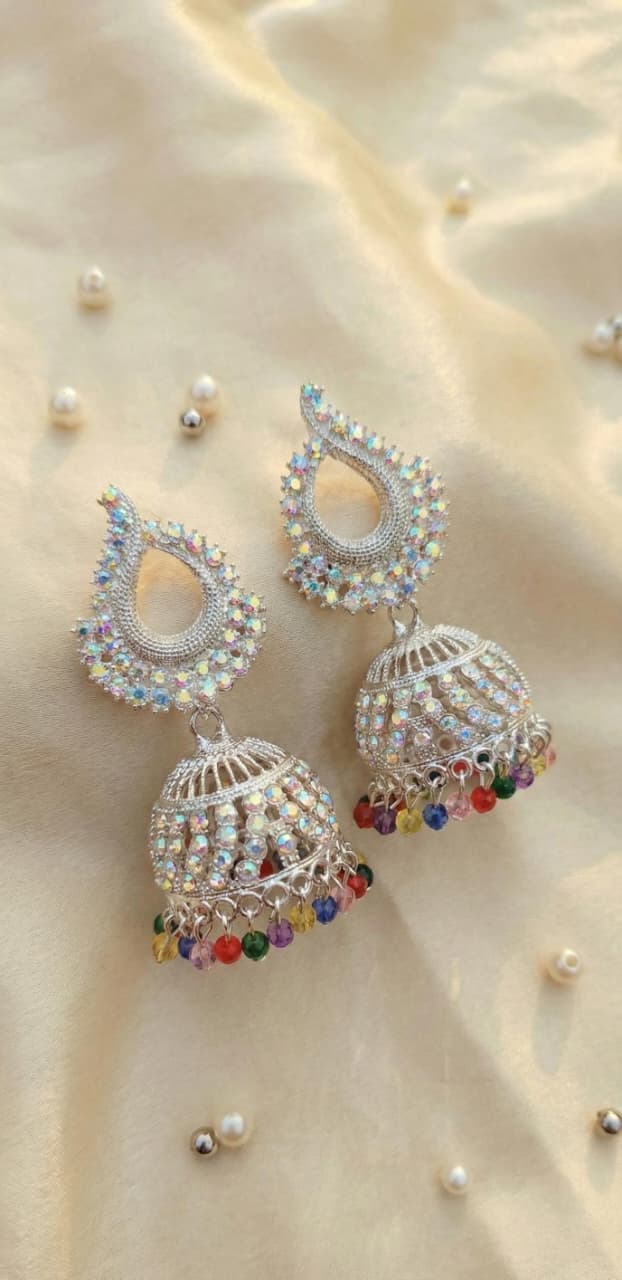 Crystal & Drop Jhumka – Premium look with multi-color danglers