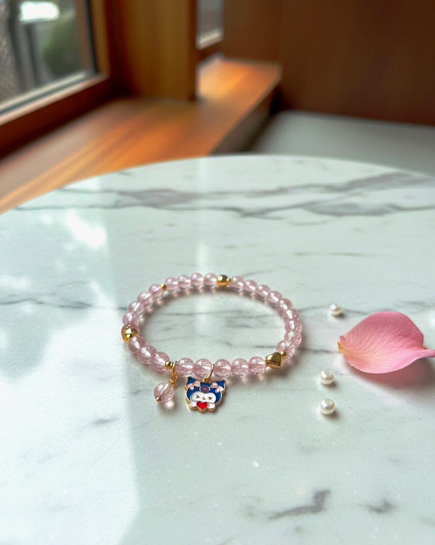 Add a touch of charm and elegance to your everyday look with this beautifully designed pink beaded charm bracelet. Crafted with glossy transparent pink beads and highlighted by a cute enamel charm with heart detailing, this bracelet blends sweetness with modern fashion.
